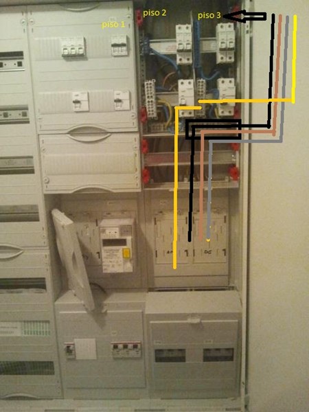 Acabo de bajar al cuadro de la bodega y aquí tengo donde van esos 4 cables que bajan...