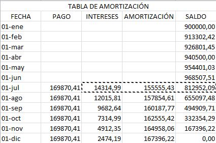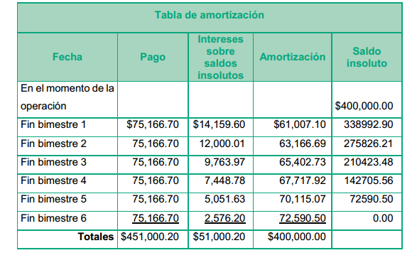 - Una empresa obtiene en el mes de enero un préstamo por $900,000 empezando a pagar en julio el cual liquidará en seis meses. Determina el valor de la renta mensual y elabora la tabla de amortización teniendo una tasa de interés del 18 % anual capitalizable trimestral.