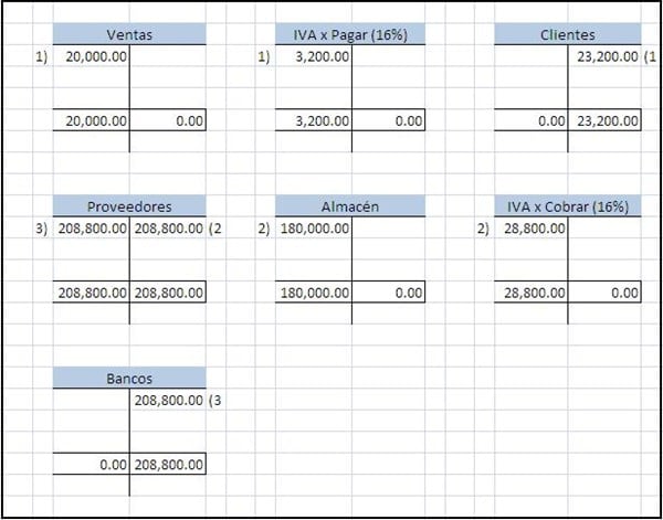 1. Se vende $20, 000 más IVA de mercancía a crédito a la compañía Xóchitl S.A. Las cuentas que utilizaras son Ventas e IVA por pagar.