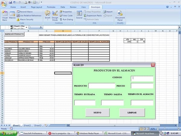 Para insertar un control de fecha, sigue los pasos: