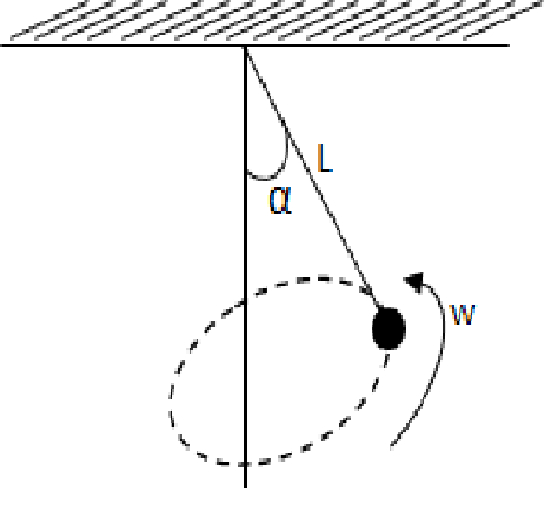 Una masa "m" que cuelga de un punto fijo por medio de una cuerda ideal de largo “L” gira alrededor de la vertical con una velocidad angular constante w. Calcule la tensión de la cuerda y el ángulo x como función de w.