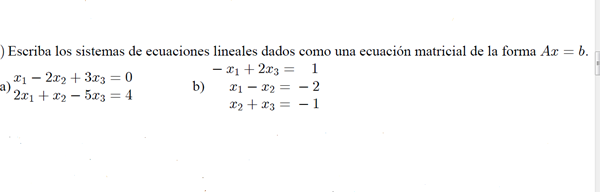 Escribir sistemas de ecuaciones lineales como una ecuación matricial ayuda porfa :z