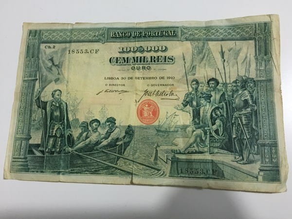 Me gustaría saber el valor del siguiente billete.. 100000 Reís de 1910.