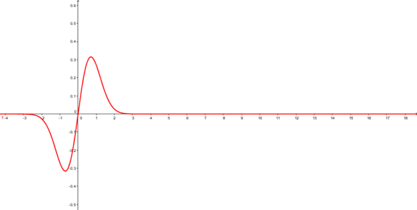 $$\begin{align}& \Dom = R \Rightarrow\ No\ tiene\ Asíntotas \ Verticales\\ & \\ & lim_{x \to \infty}\frac{2x}{e^{x^2+1}}=\frac{\infty}{\infty}=0\\ & El \ infinito \ de\ una \ exponencial \ es \ de \ orden \ superior\\ & \Rightarrow AH \ y=0\\ & \\ & f(-x)=-f(x) \Rightarrow la \ función \ es\ impar\\ & \\ & Corte \ eje \ OX \Rightarrow y=0\Rightarrow x=0\\ & Signo \ Función \ y=\frac{2x}{e^{x^2+1}}\\ & y0 \ si \ \ x>0\\ & Crecimiento:\\ & y'=\frac{2e^{x^2+1}-2x(2x)·e^{x2+1}}{(e^{x^2+1)^2}}=\frac{2-4x^2}{e^{x^2+1}}\\ & y'=0\\ & 2-4x^2=0\\ & x=\pm \frac{\sqrt2}{2}\\ & \\ & (-\infty,\frac{\sqrt2}{2}) \Rightarrow y'(-10)0 \ creciente\\ & (\frac{\sqrt2}{2},+ \infty) \Rightarrow y'(10)\end{align}$$$$\begin{align}&Dom = R \Rightarrow\ No\ tiene\ Asíntotas \ Verticales\\ &\\ &lim_{x \to \infty}\frac{2x}{e^{x^2+1}}=\frac{\infty}{\infty}=0\\ &El \ infinito \ de\ una \ exponencial \ es \ de \ orden \ superior\\ &\Rightarrow AH \ y=0\\ &\\ &f(-x)=-f(x) \Rightarrow la \ función \ es\ impar\\ &\\ &Corte \ eje \ OX \Rightarrow y=0\Rightarrow x=0\\ &Signo \ Función \ y=\frac{2x}{e^{x^2+1}}\\ &y0 \ si \ \ x>0\\ &Crecimiento:\\ &y'=\frac{2e^{x^2+1}-2x(2x)·e^{x2+1}}{(e^{x^2+1)^2}}=\frac{2-4x^2}{e^{x^2+1}}\\ &y'=0\\ &2-4x^2=0\\ &x=\pm \frac{\sqrt2}{2}\\ &\\ &(-\infty,\frac{\sqrt2}{2}) \Rightarrow y'(-10)0 \ creciente\\ &(\frac{\sqrt2}{2},+ \infty) \Rightarrow y'(10)