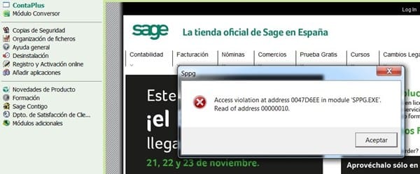 Error al intentar entrar en contaplus.