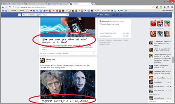 Como podéis ver en las capturas, me cambia el tipo de letra de algunos elementos de las páginas webs (suelen ser títulos).