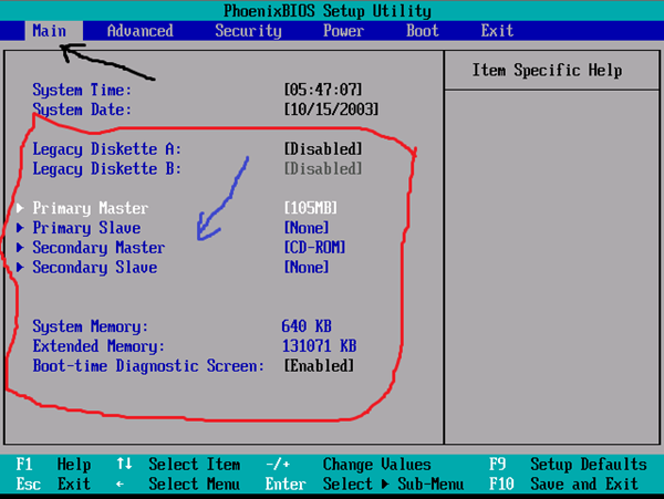 Sea cual sea, tienes que fijarte lo que esta marcado en rojo, ahí te pone desde donde arranca tu pc, bien, lo que tienes que cambiar en este caso es primary master . como ves en la imagen, y poner CD-ROM, O CD-DVD, LO QUE TE INDIQUE AHÍ, una vez hecho, metes el cd en el lector, lo cierras y reinicias, en teoría ya te debería de arrancar desde el disco de instalación, formateas o instalas, una vez hecho todo, debes de volver a la bios y volver a cambiar la secuencia de arranque, esta vez por HAR DISCK, o HD, según te aparezca, pero te repito OJO CON TOCAR OTRAS COSAS, podrías dejar la bios inútil