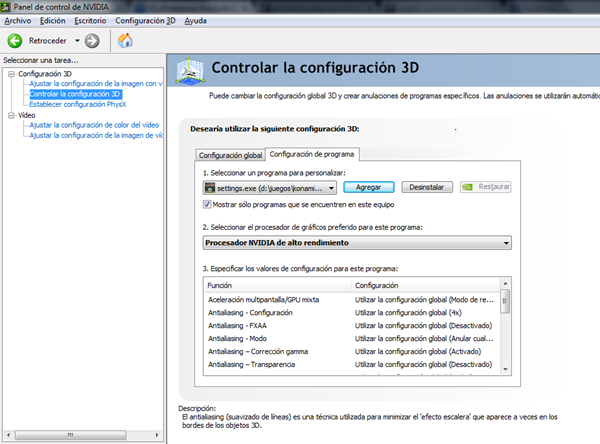 Para los que tengan tarjeta de video NVidia (debe ser similar en las tarjetas ATI)