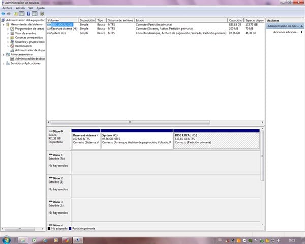 Tamaño partición System(C) del ordenador ilocalizable