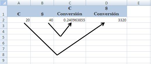 Ej: introduzco el la columna A el importe de una compra en € y me aparece en la columna B en $. En la siguiente introduzco la compra $ en la columna B y me aparece en € en la A.
