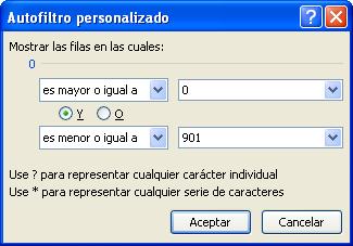 Y quiero filtrar aquellos que sean diferentes de 0, 901, 902, 903 ó mayor a 0 y menor a 901.