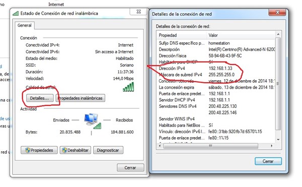 En mi caso es wifi pero si es red local también es lo mismo, tienes que hacer click en detalles y fijarte que solo haya una ip. Cuando hay dos ip, en la sección señalada en la imagen de la derecha existe otro item que dice "ip predeterminada" y más abajo lo que ves ahí "dirección ipv4".