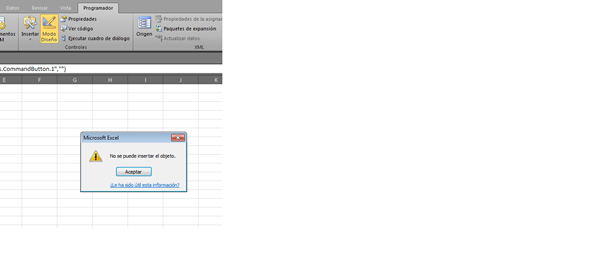 Por que me muestra el mensaje siguiente cuando deseo insertar un botón de comando desde excel., el mensaje que me muestra es No se puede insertar objeto.