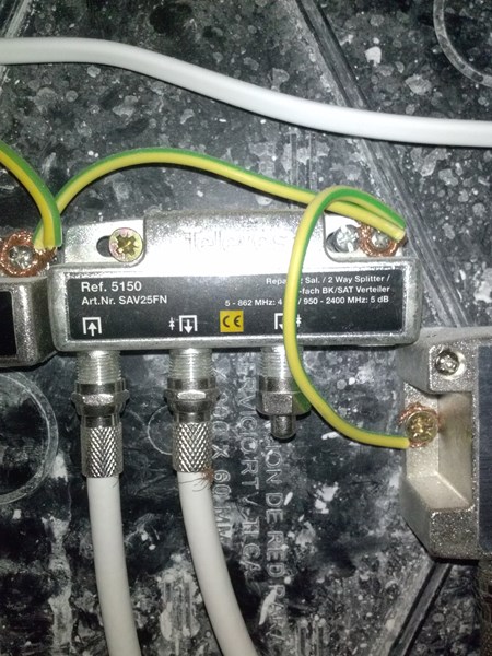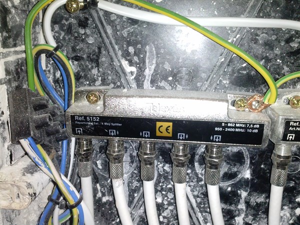 También puedes hacer otras pruebas. El repartidor 5152 pierde 10dB de señal en cada salida, mientras que el 5150 pierde solo 5dB. Pierde bastante menos señal, y el caso es que tienes una salida libre tapada con una carga. Esa piececita, llamada carga la puedes quitar del 5150 y poner ahí algún cable que le esté dando problemas del 5152, así al perder menos señal. Y la carga la pones en el hueco que le quede libre del 5152.