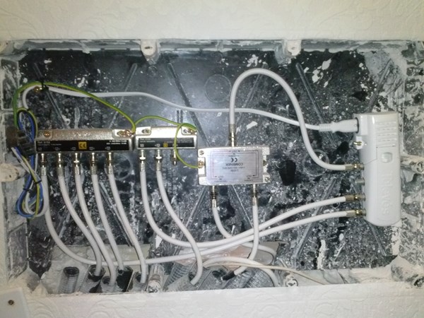 Por otro lado, no me he dado cuenta de preguntarte si el uhf, sin el satélite se ve bien o también te da problemas, a ver si también vamos a tener problemas en la recepción desde la antena, una forma de probarla sería poner la entrada de uhf directamente a cualquier salida, a ser posible a una que esté lo mas cerca posible para que no tenga muchas perdidas por el cable, así probaríamos que la antena va bien, de no ser así deberías buscar a algún antenista de confianza para que te revise la instalación con un medidor de campo, si fuese bien, entonces debería de funcionar la instalación que te propongo.
