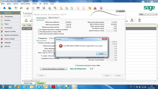 NominaPlus Élite 2014, error en el cálculo de tipo de retención de IRPF