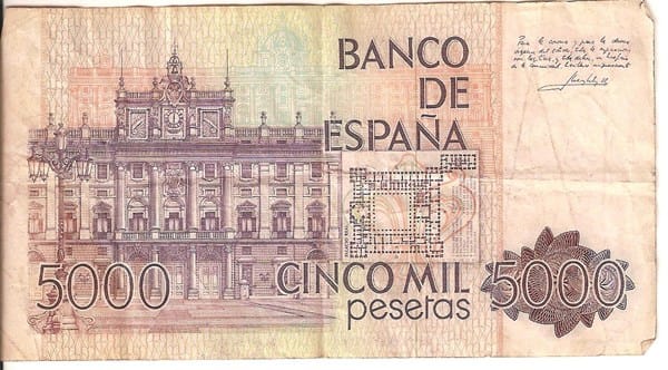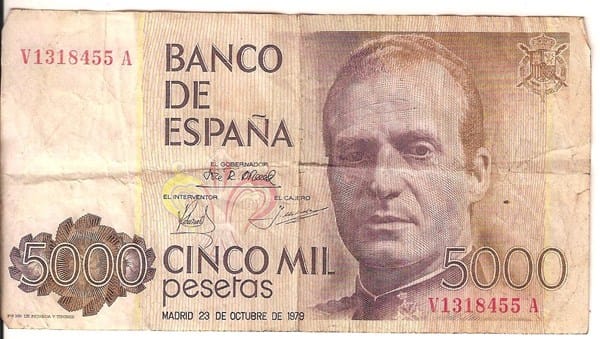 Tengo un billete de 5000 ptas, del Rey Juan Carlos I, fecha del billete, Madrid 23 de Octubre 1979. De la serie V1318455 A.