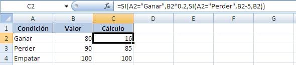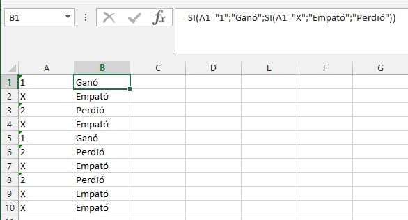 Necesitaría saber como poner tres condiciones a una celda, ganar, perder y empatar. Y que en función de lo que ocurra, opere automáticamente calculando un %, restando o manteniendo el resultado.