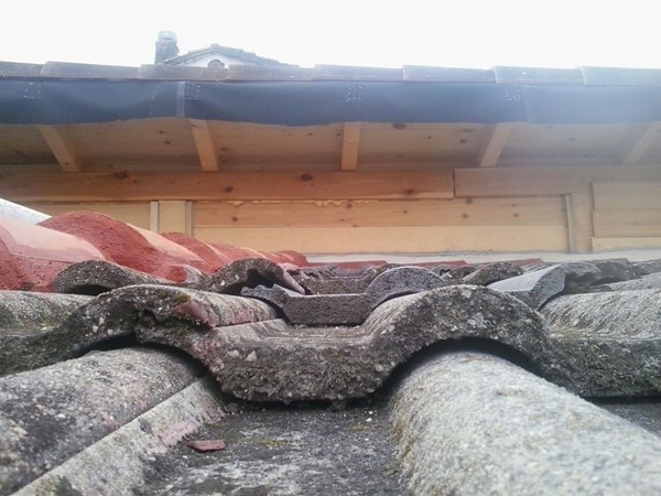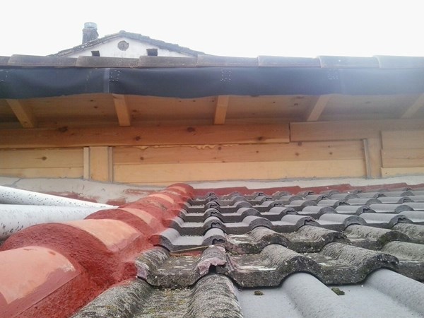 SI o NO dependiendo por un lado con la normativa municipal mirando el tema alturas, estética de la zona urbanística de la construcción, añado material que se ve en la foto de la obra. Por otro lado mientras este realizado como se ve en la foto, con su inclinación que no le perjudica a usted con el tema lluvias, podrían haber puesto una canal por si acaso de la recogida de aguas que a lo mejor esta por el otro lado ya que estas no pueden caer a la calle, también depende de la normativa por que hay de todo en todos los lados. Por estética por lo menos haber mantenido la misma altura de usted por igual para evitar estas cosas, por eso digo SI o NO por que para poder reclamar solo lo sabrá con la normativa ya que este no le va a perjudicar
