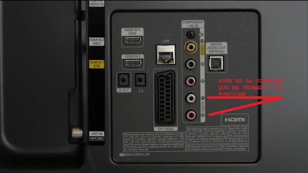 Tengo un Smart tv marca Samsung modelo UE32H6400, como quiero conectarlo a mi equipo e música que tiene una función para equipos externos, los he conectados entre si con un cable RCA, ya que es la única entrada que tiene mi equipo de sonido. El problema es que no funciona, he comprobado las cuatro clavijas, pero están perfectamente, incluso lo he probado con mi antiguo tv (era como anteriormente lo tenia conectado), y funciona perfectamente. Como he visto que el Smart tv tiene diferentes conexiones en su parte trasera (adjunto imagen), quisiera saber que otra formula puedo hacer para poder hacer la conexión entre ambos aparatos. Muchas gracias.