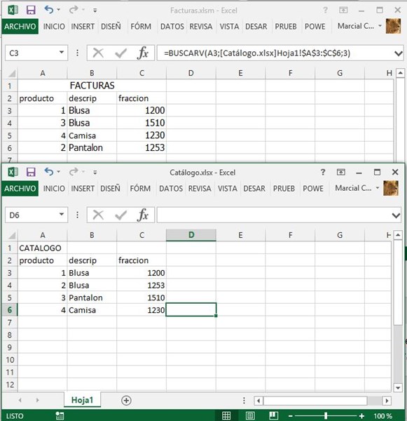 Tengo un libro de excel (catalogo) y me enviaran facturas en excel