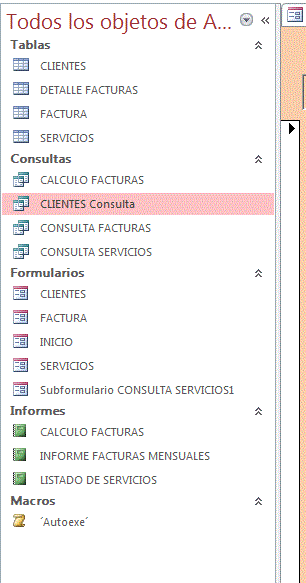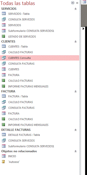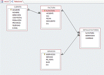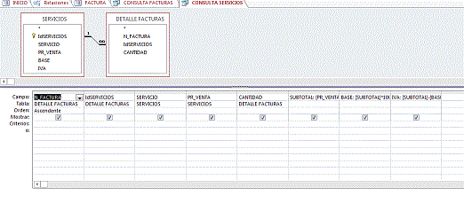 Hola , mi problema es : tengo una Bdatos con las tablas Clientes, Servicios , facturas y detalles de factura están relacionadas asi