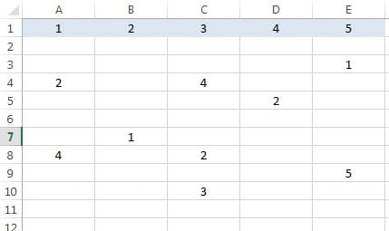 En la columna 2, cuente los espacios vacíos hasta el nº 1, señale el nº 1, y cuente los espacios vacíos hasta la fila nº 11.