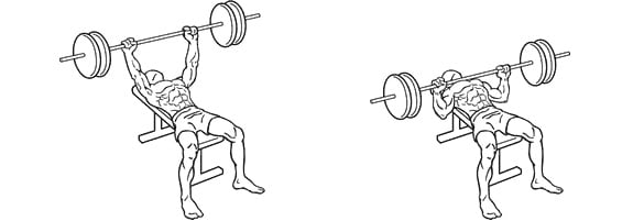 Deberas hacer ejercicio de pecho con barra. Lo puedes hacer en un banco como la imagen de abajo, pero yo por mucho tiempo lo hice en el suelo y en la cama y me parece que no hay ningun problema.