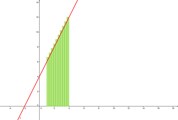 Sumas de Riemann (2) f(x) = 2x + 4 en el intervalo (1,4)