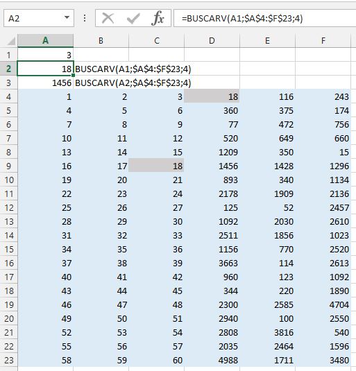 En celda A1 pongo 3 en celda A2 función =buscarv(A1, Rango, 2, falso) me devuelve 650, en A2, pero en A3 tengo otra función =buscarv(A2, Rango, 2, falso) y aquí no me reconoce el 650 que me devolvió la función anterior me pone #N/A.
