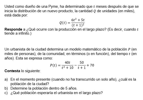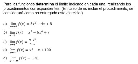 Determina el limite indicado en cada una, realizando los procedimientos correspondientes.