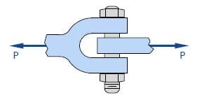 En el problema que nos ocupa, habría una estructura unida a otra, en la que habría una pareja de pines de seguridad a cada lado, 4 en total, con uniones como la mostrada en la figura superior (double shear).