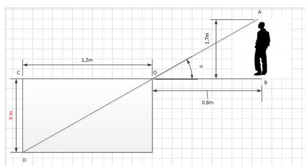 La semejanza aplicaciones ¿Cuál es la profundidad de un pozo, si su anchura es 1,2m y alejándote 0,8m del borde, desde una altura de 1,7m, ves que la visual une el borde del pozo con la línea del fondo?