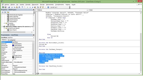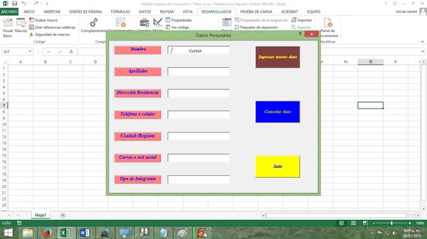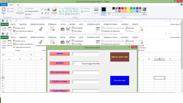 Por ejemplo he creado una macro para un botón de ingreso de datos y para la sección en que se pregunta por un nombre (para ingresar),