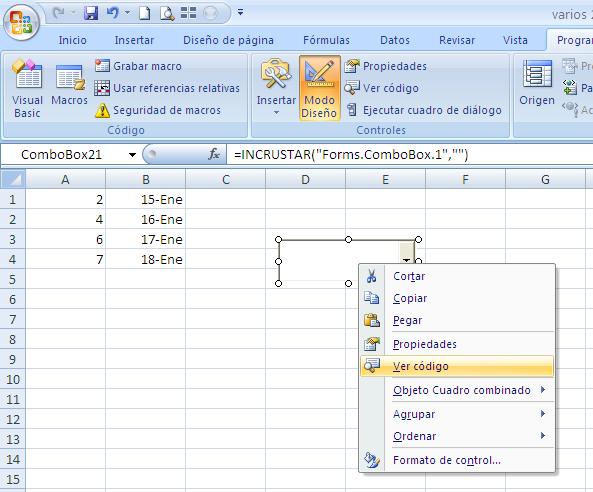 Manejo de combox incrustados en hojas excel