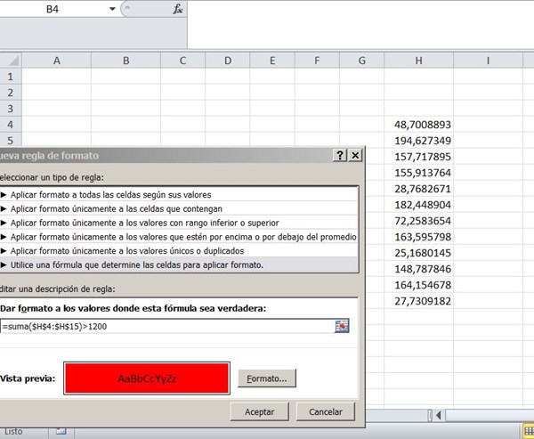 Tengo un rango de celdas (b4:n44) y hay una columna (h) que lo que necesito es que según el valor de esta, el resto cambie de color, es decir si h4:h44 tiene desde h4 hasta h15 un valor, todas las celdas desde b4 hasta n15 tengan el color verde (por ejemplo) si h16 hasta h19 tienen otro valor, todas las celdas desde b16 hasta n19 tengan el color azul, y así sucesivamente hasta h44.
