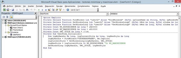 Mejor, dejo aquí el código, para colocar los botones de Minimizar y Maximizar a un formulario Excel VBA.
