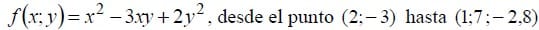 $$\begin{align}&\text{el cambio será}\\&\\&f(x+\Delta x,y+\Delta y)-f(x,y)\\&\\&\text{y la estimación mediante diferenciales es}\\&\\&f(x+\Delta x, y+\Delta y) = f(x,y)+f_x(x,y)·\Delta x+f_y(x,y)·\Delta y\\&\\&\text{por lo cual}\\&\\&f(x+\Delta x,y+\Delta y)-f(x,y)=f_x(x,y)·\Delta x+f_y(x,y)·\Delta y\\&\\&\text {calculamos esos 4 valores}\\&\\&f_x(x,y)=\frac{\partial f(x,y)}{x}=2x-3y\\&\\&f_x(2,-3)=2·2-3(-3)=13\\&\\&\Delta x= 1.7-2 =-0.3\\&\\&\\&\\&f_y(x,y)=\frac{\partial f(x,y)}{y}=-3x+4y\\&\\&f_y(2,-3)= -3·2+4(-3)=-18\\&\\&\Delta y = -2.8 -(-3)=0.2\\&\\&\text{Y el cambio estimado es}\\&\\&13·(-0.3)+(-18)·0.2= -3.9-3.6 =-7.5\\&\\&\end{align}$$Con lo cual la respuesta es la A. Espero no te haya supuesto ningún perjuicio y he corregido tan pronto he sido advertido del error.