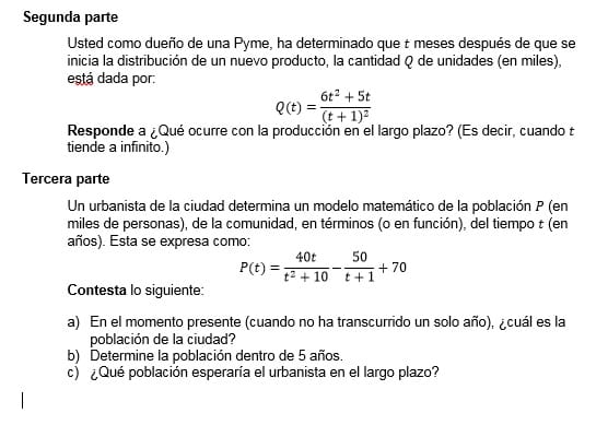 Hay que calcular el límite cuando t tiende a infinito de Q(t). A simple vista se ve que es 6, pero vamos a calcularlo con toda la teoría necesaria