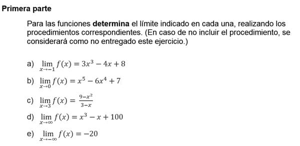 a) Es un polinomio, salvo en el infinito el límite es el valor del polinomio en el punto
