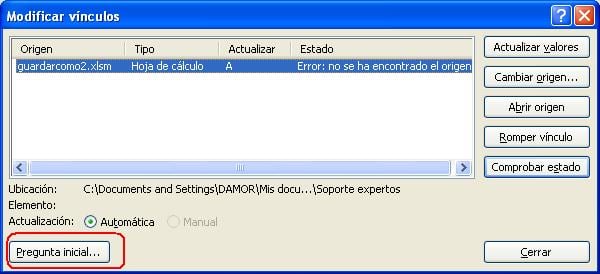Tengo excel 2.003, y lo tengo configurado en Edición, Vínculos y pregunta inicial: