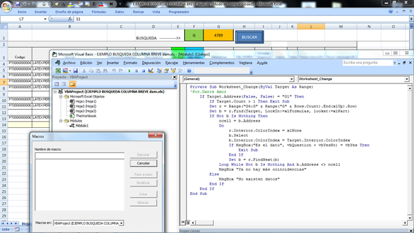 3) Que la MACRO coloree de "naranja" el dato que coincida con mi búsqueda cuando yo apreté la tecla "Esc"
