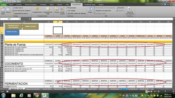 El problema se presenta en las filas 128:129 , 137:138, y la 146:147 estas llevan nombres de la semana con fecha. Gracias por la respuesta que me puedas dar
