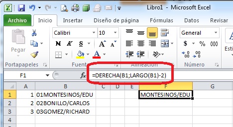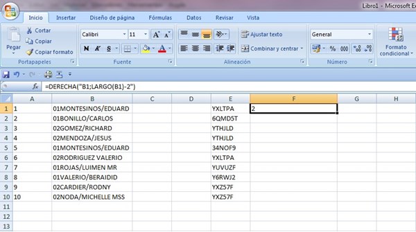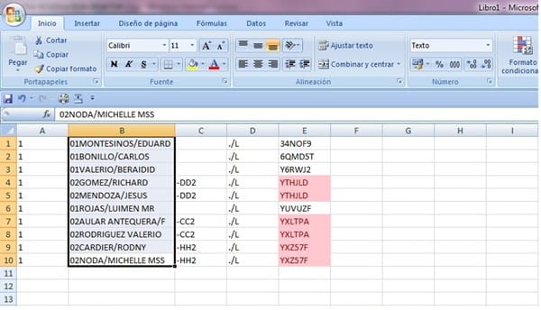 En la columna B siempre hay que borrar los números de enfrente manualmente, y esto es un poco engorroso par mi gusto, si alguien conoce alguna fórmula, regla o función que se pueda utilizar para resolver esto de manera mucho más rápida.