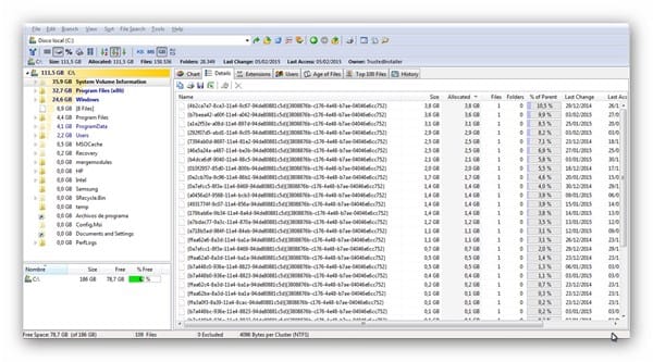 Hola, hace unos días me he dado cuenta de que poco a poco me queda menos espacio en el pc sin haber instalado yo ningún programa ni nada por el estilo, instale el programa TreeSize Professional para saber donde estaba el problema y vi que en una carpeta llamada "system volume information" no hace más que crear y modificar archivos de gran tamaño, os adjunto una captura de pantalla, ¿quisiera saber esos archivos que son, si puedo eliminarlos? Y si se puede ¿cómo los elimino? Ya que lo e intentado con uno y no me deja, gracias de antemano por la ayuda.