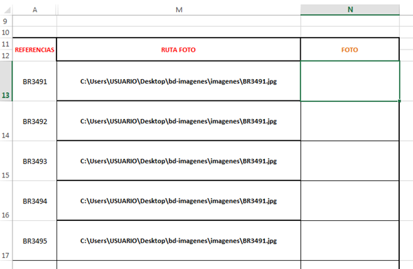 Necesito que al digitar una referencia se cargue la foto, he tratado con macros pero no soy experto en el tema. Tengo una columna de referencia, otra de ruta o path de la foto y en otra donde debería mostrar la imagen. La idea es cargar entre 12 y 50 fotos ya que es un formato para realizar pedidos.