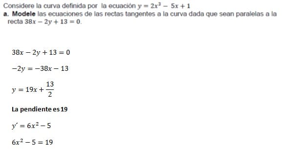 Luego ya tienes la pendiente que deben tener las rectas tangentes, debe ser 1. Y a partior de aquí el ejercicio sería igual que el anterior