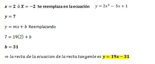 Y una vez conocidos yo=7, xo=2, f'(xo)=19 la ecuación sería