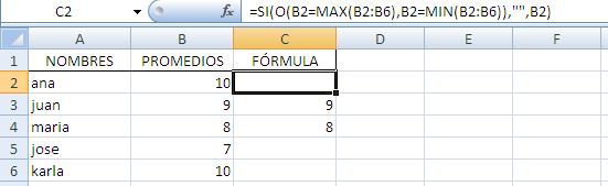 Tengo una lista de calificaciones y solo necesito los alumnos con promedio intermedio. No quiero los alumnos con baja calificación ni los de alta calificación. ¿Qué fórmula aplico?