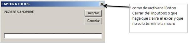 ¿Lo qué necesito es que el botón cerrar (X) del inputbox también cierre el excel y que no solo termine la macro o que se puede desactivar el botón cerrar?